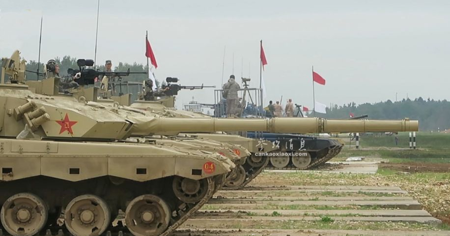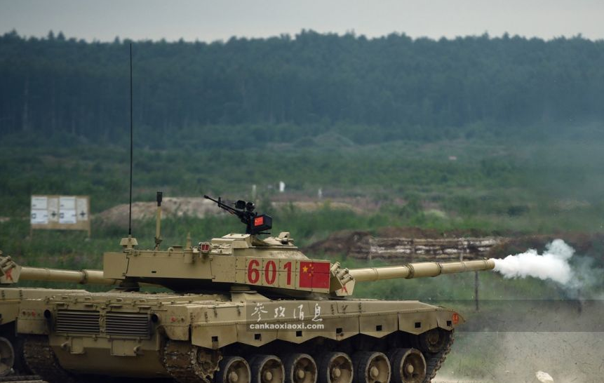 中方參賽隊96B坦克進行主炮校射。