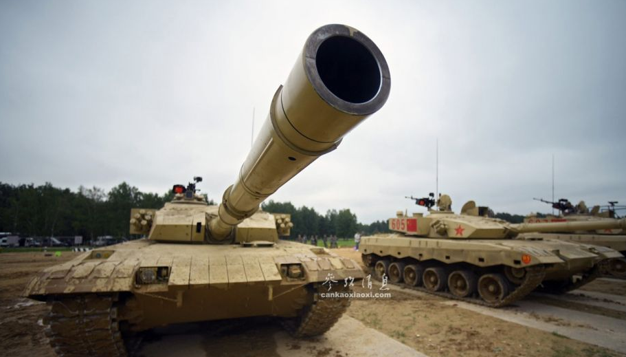 96B坦克的125毫米主炮特寫照,頗具視覺沖擊力。