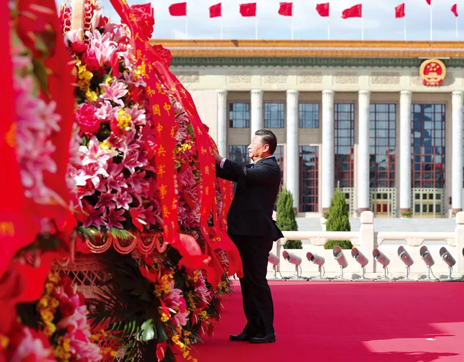 2018年9月30日上午,黨和國家領導人習近平、李克強、栗戰(zhàn)書、汪洋、王滬寧、趙樂際、韓正、王岐山等來到北京天安門廣場,