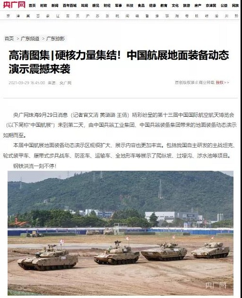 9月28日-10月3日,第十三屆中國國際航空航天博覽會在廣東珠海舉行,中國兵器工業(yè)集團有限公司作為主辦單位閃耀亮相,推出裝甲突擊、火力打擊、智能彈藥、防空反導、無人裝備、非傳統(tǒng)安全、軍工軍技合作等領域新產品及成體系成建制武器系統(tǒng)和解決方案,全方位展示我國陸軍外貿武器裝備的最高水平以及雄厚的科技創(chuàng)新、自主研發(fā)與先進制造能力,受到廣泛關注。 央視《新聞聯播》報道第十三屆中國航展,著重介紹了VT4主戰(zhàn)坦克,關注航展公眾日中國兵器館情況。9月28日下午央視《新聞直播間》航展特別節(jié)目《藍天盛會》邀請集團公司訪談嘉賓做客直播間對中國兵器館兵器工業(yè)集團展區(qū)等進行1小時直播;9月28日下午、10月2日下午分別對地面裝備動態(tài)表演進行兩場直播。央視《朝聞天下》、《新聞直播間》、《共同關注》、《天下財經》、《軍事報道》、《正午國防軍事》、《軍武零距離》等相繼推出集團公司參展裝備的報道。 人民日報、新華社、中國日報、共青團中央、國資小新、騰訊軍事、鳳凰軍事、新浪軍事等新媒體發(fā)布的集團公司航展宣傳片等視頻作品燃爆全網,閱讀量突破三千萬人次,得到外交部發(fā)言人趙立堅轉載點贊。集團公司微信、微博、抖音號、微信視頻號等新媒體宣傳片播放閱讀量超過400萬人次。同時,央視新聞、新華社、中國之聲、央視軍事、央視新媒體、解放軍報、共青團中央、國資小新、環(huán)球時報等多家媒體對集團公司靜、動態(tài)展區(qū)進行現場直播,在電視端、客戶端、微信視頻號、微博、B站、快手、抖音等平臺受到高度關注。著名軍事專家杜文龍、央視主持人顧國寧、央廣中國之聲主持人王藝等直播兵器館、動態(tài)表演區(qū)裝備。 《參考消息》、新華網、央廣網、中國日報、科技日報、解放軍報、人民網、中國新聞網、中國青年網、中國網、中工網、央視網、環(huán)球網、騰訊網、新浪網、鳳凰網、搜狐網、網易網、今日頭條等中央主流媒體和知名網絡媒體以及南方日報、廣東電視臺、北京電視臺、新京報、珠海傳媒集團、深圳衛(wèi)視等省市媒體對集團公司參展情況進行了圖片、文字、視頻報道。 航展期間,備受關注的中國兵器館,參觀的觀眾絡繹不絕。 |