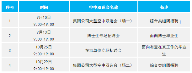 期間我們將組織兵器工業(yè)集團下屬單位開展空中專場雙選會,參加各大高校的空中招聘會,敬請期待!