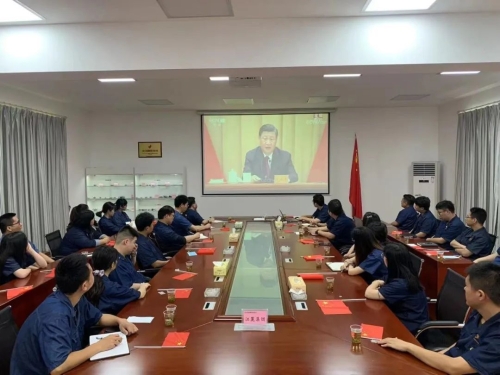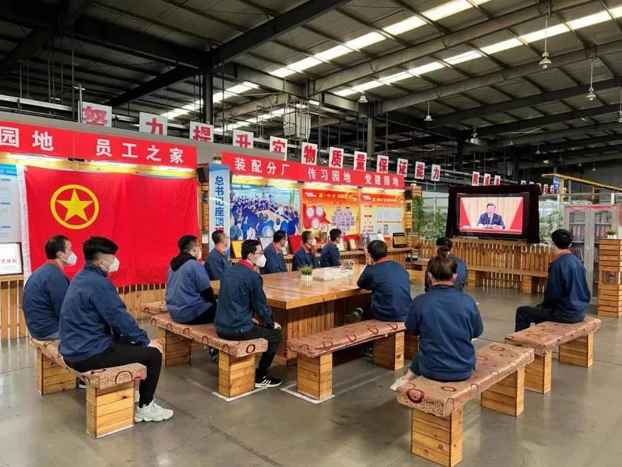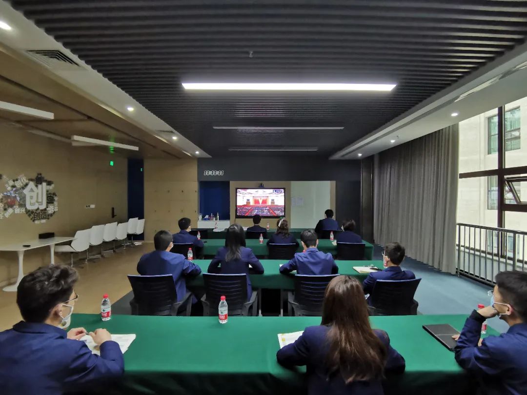 ▲特能集團(tuán)團(tuán)委組織團(tuán)員青年收看現(xiàn)場直播