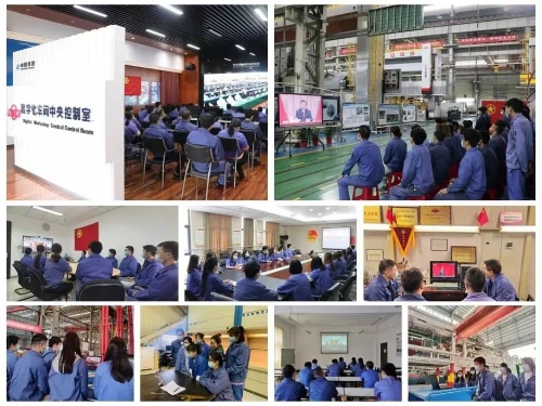 ▲和平重工集團(tuán)團(tuán)委組織團(tuán)員青年收看現(xiàn)場直播
