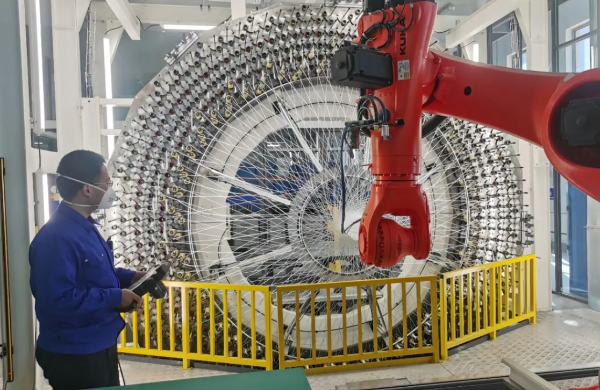 材料院53所科研人員利用三維編織機(jī)進(jìn)行某預(yù)成型體制備實(shí)驗(yàn),持續(xù)提升產(chǎn)品性能指標(biāo)。