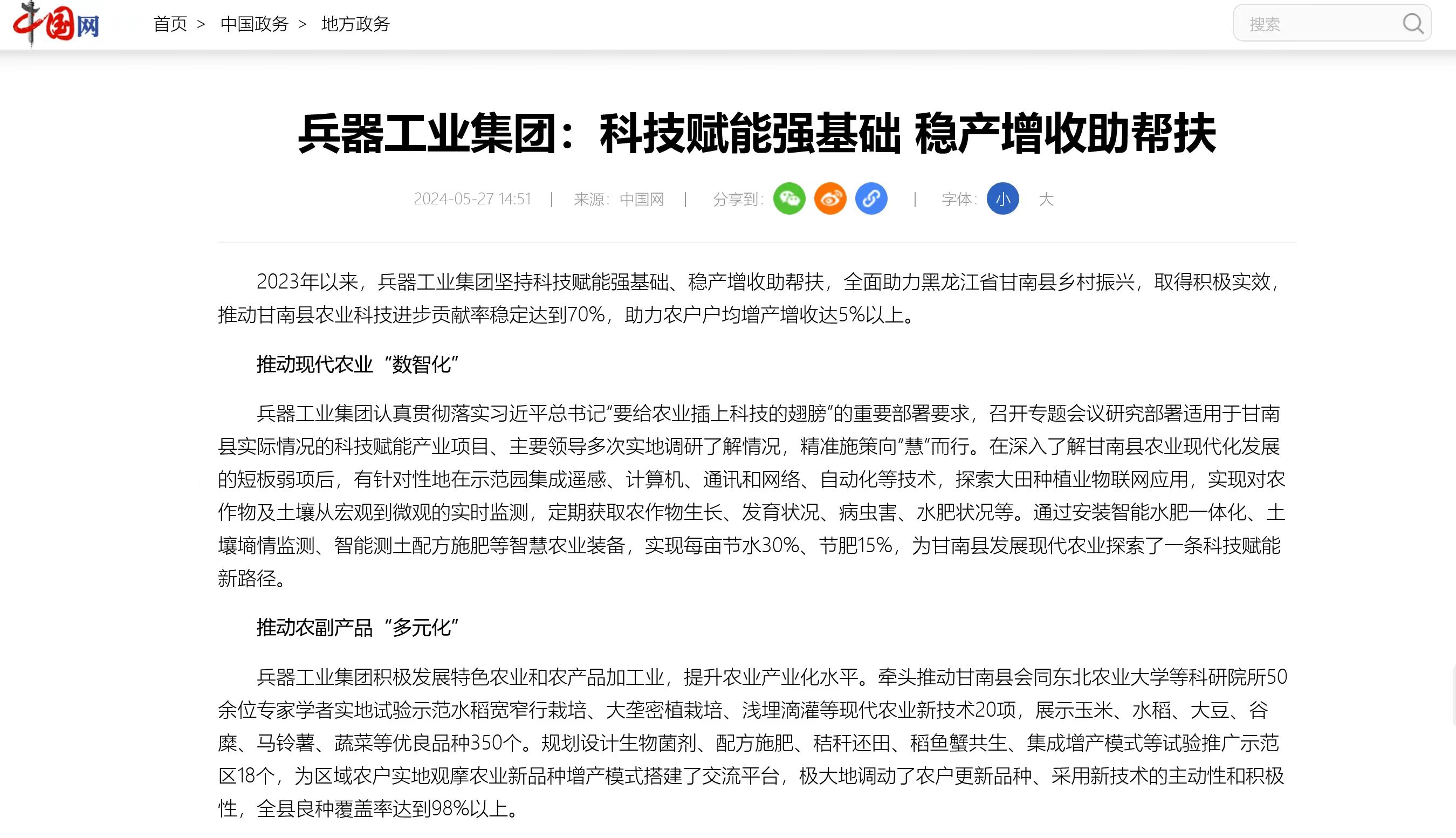 中國網(wǎng)報道兵器工業(yè)集團科技賦能 助力黑龍江省甘南縣鄉(xiāng)村振興
